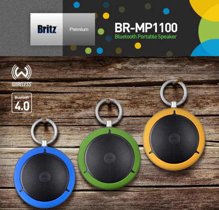 브리츠 BR-MP1100은 댄디한 디자인에 산뜻한 색상, Carabiner Clip 착용으로 휴대성을 강화한 프리미엄 블루투스 스피커 입니다.